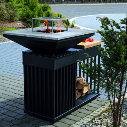 Palenisko z grillem QUADRUM z blatem drewnianym