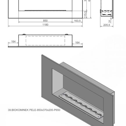 Biokominek PELE 850x370x193-P650
