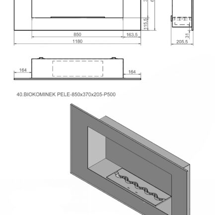 Biokominek PELE 850x370x205-P500