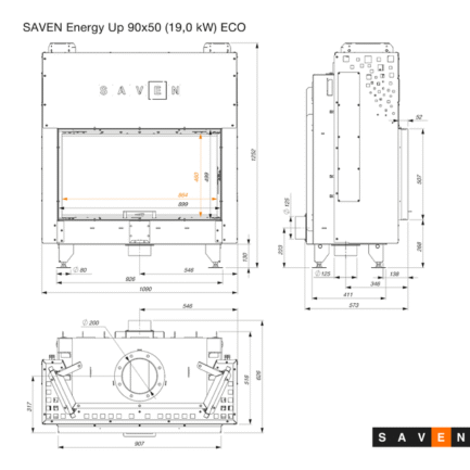 Wkład kominkowy SAVEN Energy Up 90х50 (19.0 kW) ECO