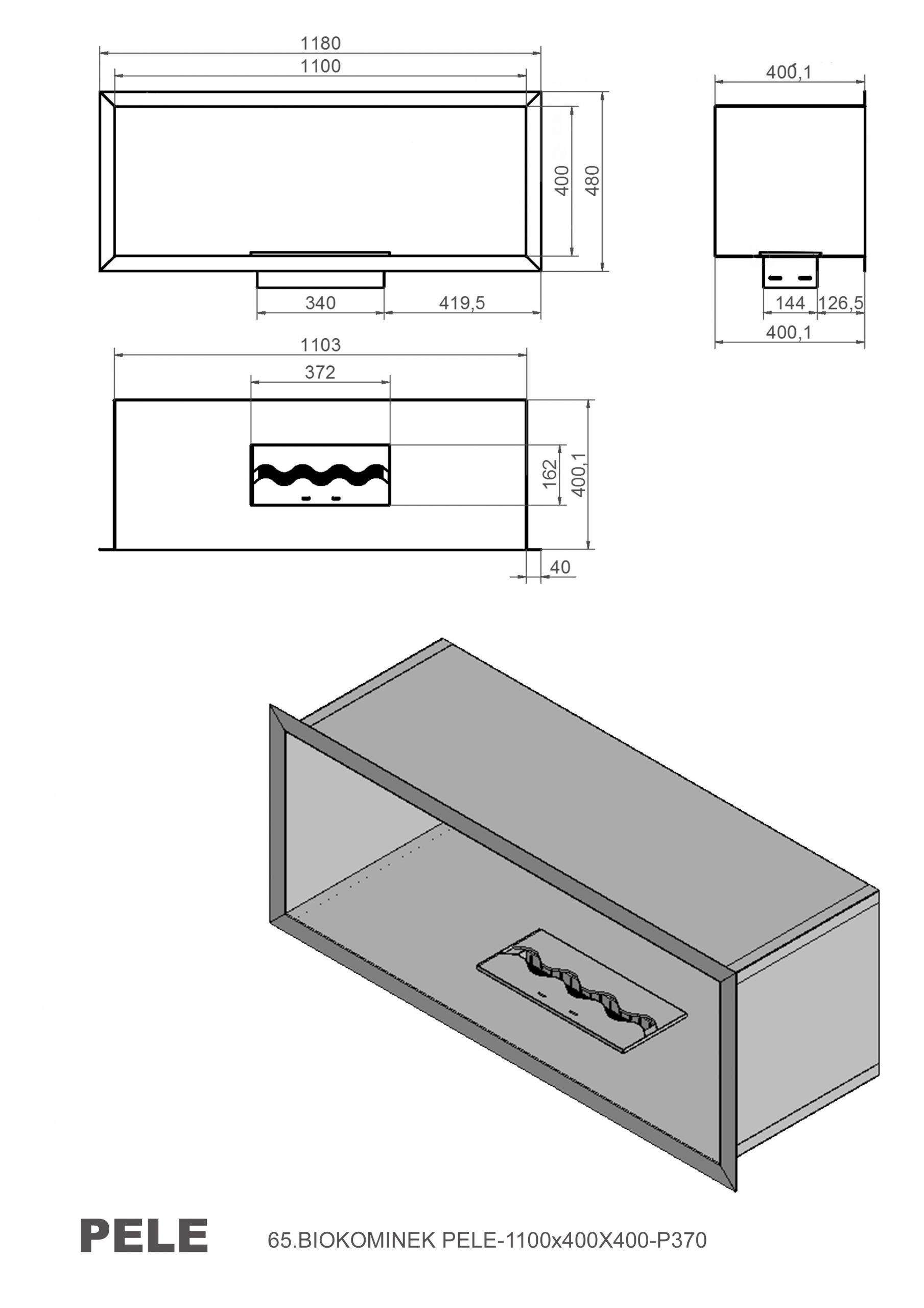 Biokominek Pele 1100x400X400-P370 jest wyszukanym i oryginalnym modelem kominka do zabudowy na bioetanol.