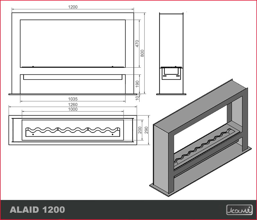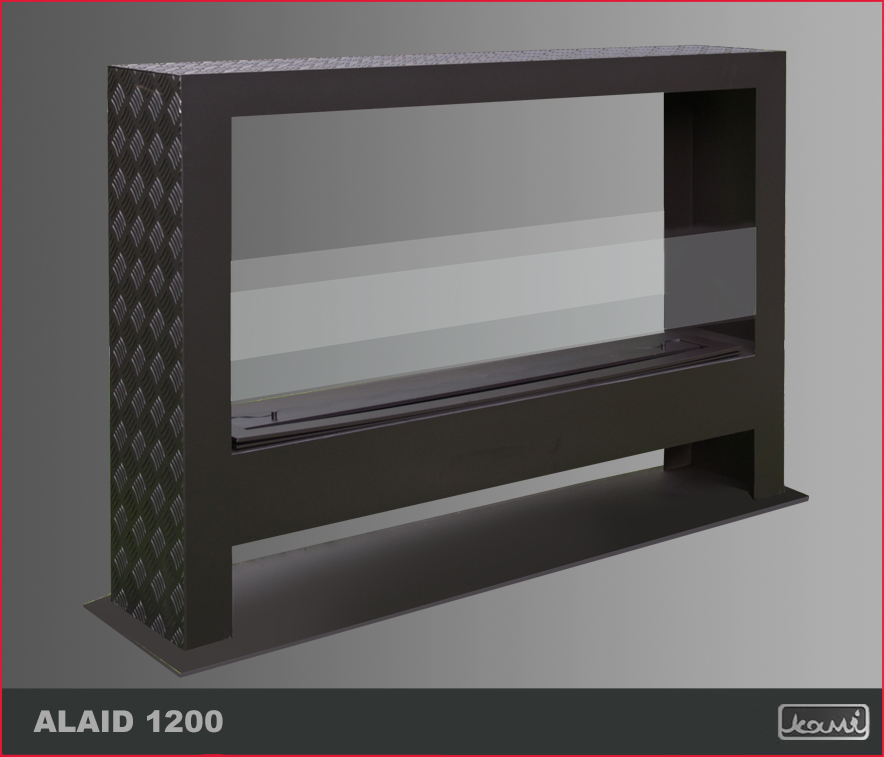 Biokominek Alaid 1200 to model wolnostojący dający wiele możliwości aranżacji. Prosta obudowa sprawia, że kominek można postawić niemal w każdym pomieszczeniu, a jego przestrzenna bryła pozwala cieszyć się widokiem ognia z wielu miejsc. Zastosowany w nim wkład 1000/200 zapewni piękną, długą linię ognia.