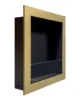 Biokominek Hierro Złoty może być również użytkowany jako biokominek naścienny (wiszący). Jego wymiary pozwalają na ozdobienie ściany nawet w niewielkich pomieszczeniach. Konstrukcja biokominka wykonana jest z blachy stalowej o gr. 1,5 mm i malowana proszkowo na kolor czarny półmatowy NON 000. Elementem dekoracyjnym jest stal lakierowana proszkowo na kolor czarny półmatowy NON 000.