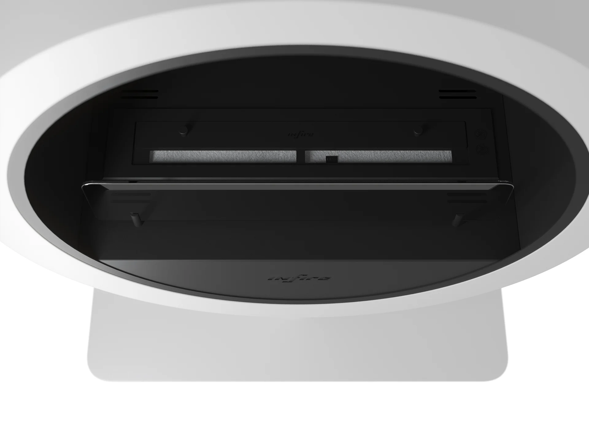 Biokominek Incyrcle Stand wyposażony standardowo w palenisko 500 mm z wkładem z włókna ceramicznego podnoszące bezpieczeństwo użytkowania i wydłużające czas palenia. Dodatkowo palnik osłonięty szyba ze szkła hartowanego.