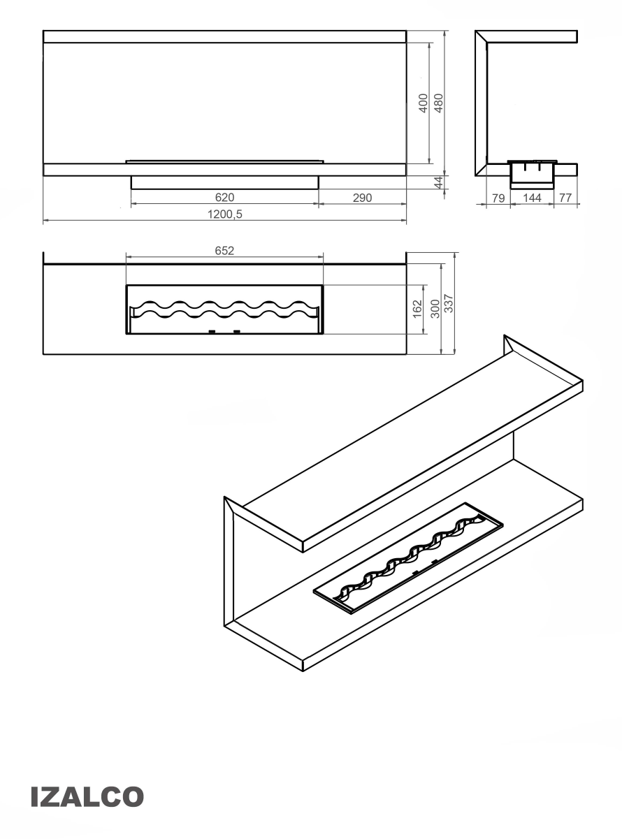Biokominek do zabudowy Izalco 1200x400x300-P650 może być również użytkowany jako biokominek stojący. Jego wymiary pozwalają na ozdobienie dużych przestrzeni w pomieszczeniach.