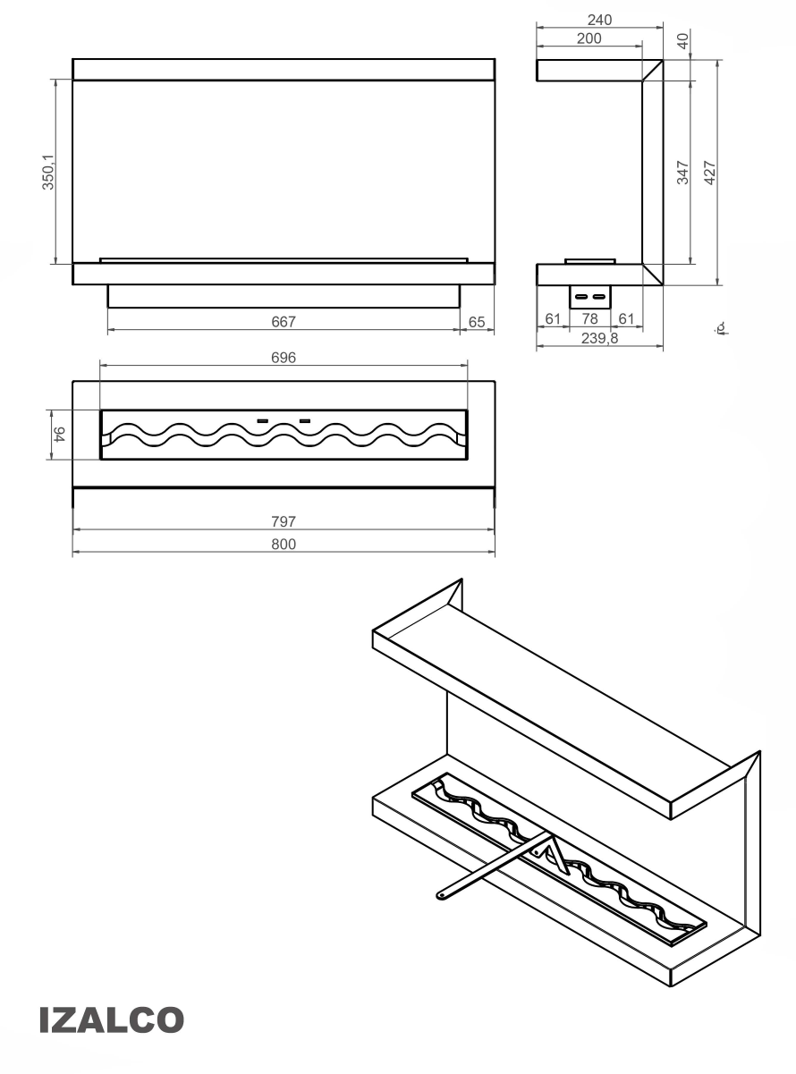 Biokominek Izalco 800x350x200-P700