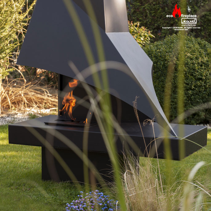Biokominek KAMERUN wykonany jest z blachy stalowej o gr. 1,5 mm malowana proszkowo farbą termoodporną na kolor czarny półmatowy NON 000.