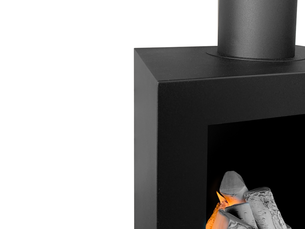 Obudowa produktu została wykonana w całości ze stali, a wszystkie elementy precyzyjnie pokryto odporną na wysoką temperaturę oraz uszkodzenia farbą. Produkt dodatkowo został wyposażony w wykonany ze stali nierdzewnej palnik na biopaliwo