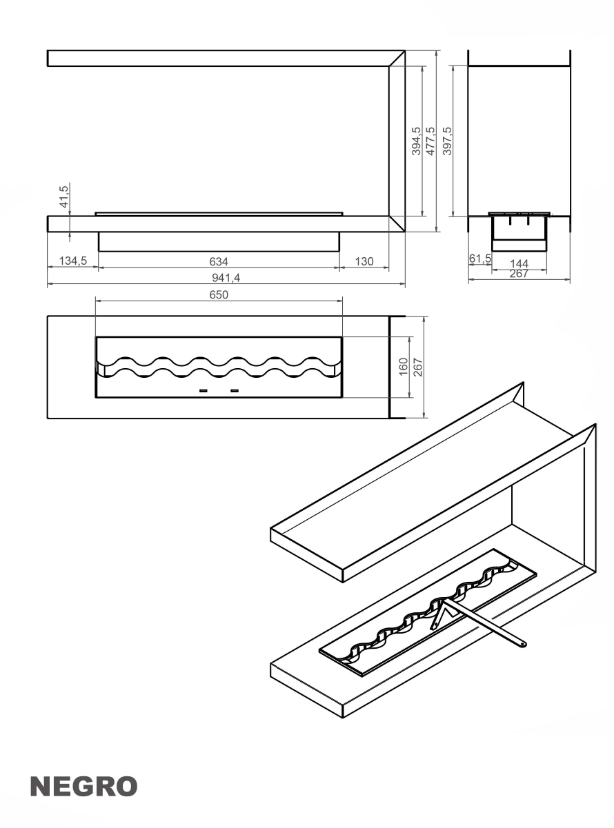 Biokominek Negro 899x395x267-P650 oferujemy w zestawie z wkładem typu FALA. To wkłady z pokrywą precyzyjnie wyciętą w kształt sinusoidy (fali). Dzięki temu uzyskaliśmy niepowtarzalny efekt trójwymiarowości płonącego ognia, który w takiej wersji jest po prostu wyjątkowy! Regulacji wielkości płomienia dokonuje się za pomocą specjalnego uchwytu poprzez przesunięcie jednej z części pokrywy. Nie jest to zadanie trudne i nie wymaga wysiłku. Laserowo wycięty kształt blachy zapewnia idealne spasowanie obu części po zsunięciu ich do siebie w celu wygaszenia ognia. Ponadto dla większego bezpieczeństwa użytkowników wkładów KAMI w palnikach o długości pow. 600 mm stosujemy pokrywę domykaną „na zakładkę”, która gwarantuje błyskawiczne i pewne wygaszenie ognia w biokominku.