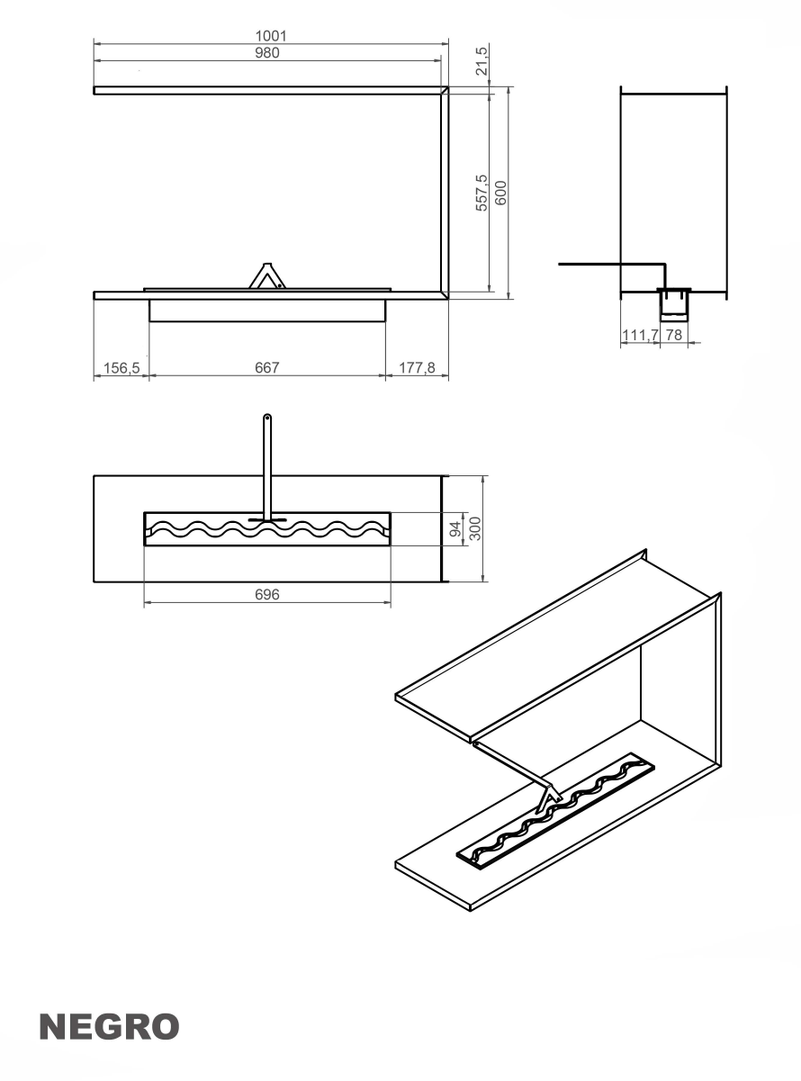Biokominek Negro 980x558x300-P700 oferujemy w zestawie z wkładem typu FALA. To wkłady z pokrywą precyzyjnie wyciętą w kształt sinusoidy (fali). Dzięki temu uzyskaliśmy niepowtarzalny efekt trójwymiarowości płonącego ognia, który w takiej wersji jest po prostu wyjątkowy! Regulacji wielkości płomienia dokonuje się za pomocą specjalnego uchwytu poprzez przesunięcie jednej z części pokrywy. Nie jest to zadanie trudne i nie wymaga wysiłku. Laserowo wycięty kształt blachy zapewnia idealne spasowanie obu części po zsunięciu ich do siebie w celu wygaszenia ognia. Ponadto dla większego bezpieczeństwa użytkowników wkładów KAMI w palnikach o długości pow. 600 mm stosujemy pokrywę domykaną „na zakładkę”, która gwarantuje błyskawiczne i pewne wygaszenie ognia w biokominku.