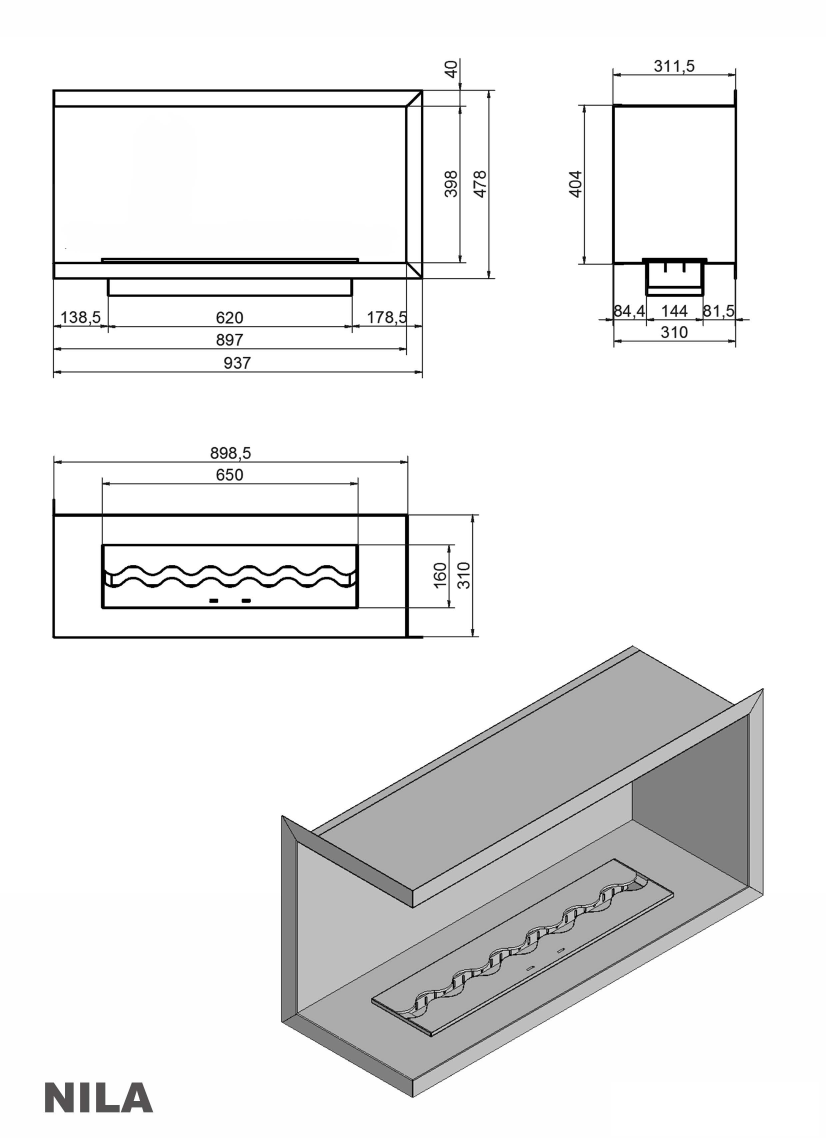 Konstrukcja biokominka wykonana jest z blachy stalowej o gr. 1,5 mm i malowana proszkowo na kolor czarny półmatowy NON 000. Kominek na biopaliwo Nila świetnie będzie się prezentował zarówno w dużym mieszkaniu, jak i w salonie w domu jednorodzinnym, a także w gabinecie czy w restauracji.