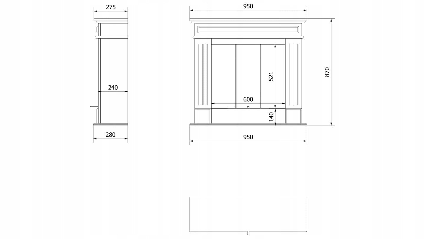 Wysokość przeszklenia po zamontowaniu w biokominku: 8,5 cm.