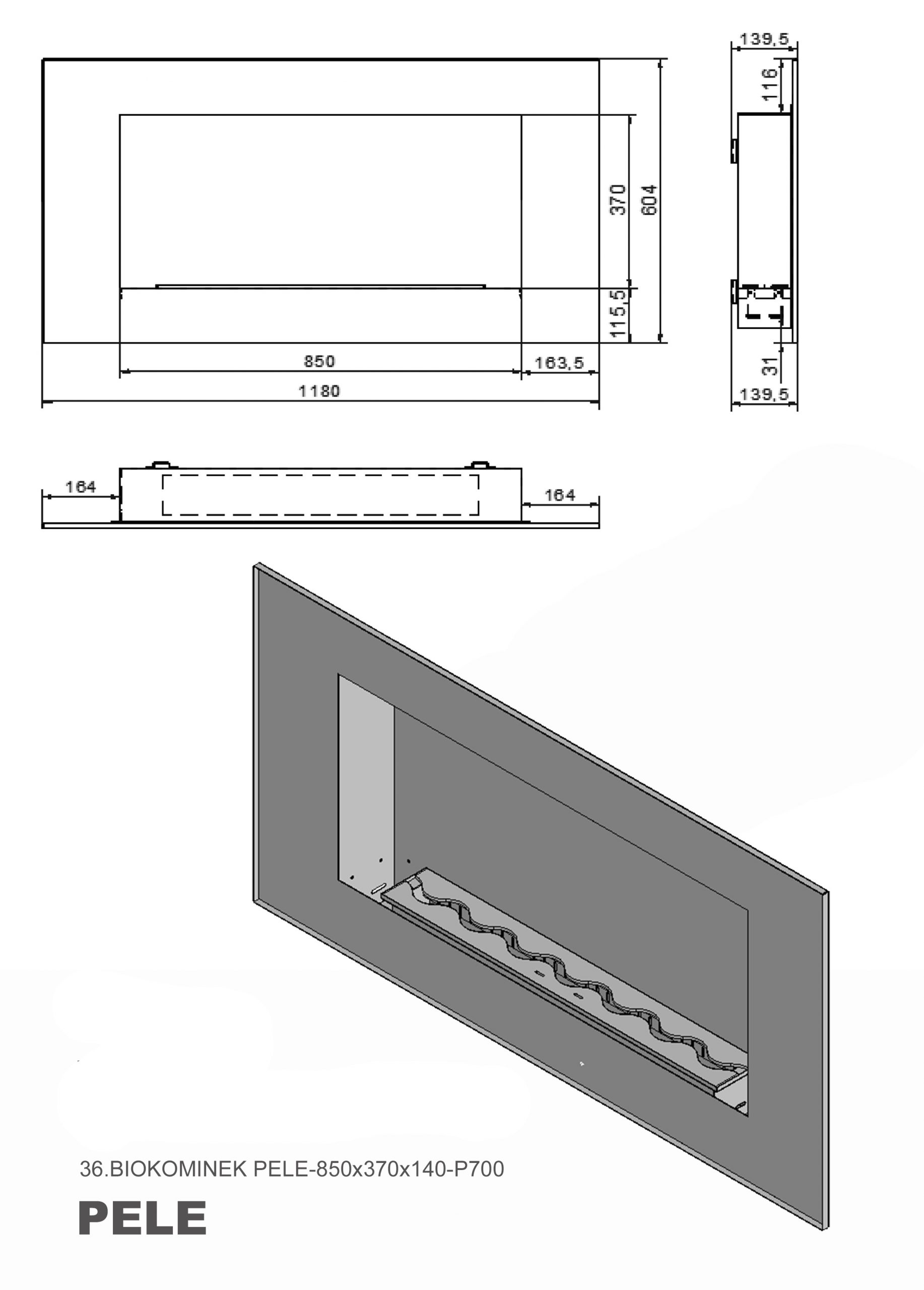 Napisz pierwszą opinię o „Biokominek PELE 850x370x140-P700”