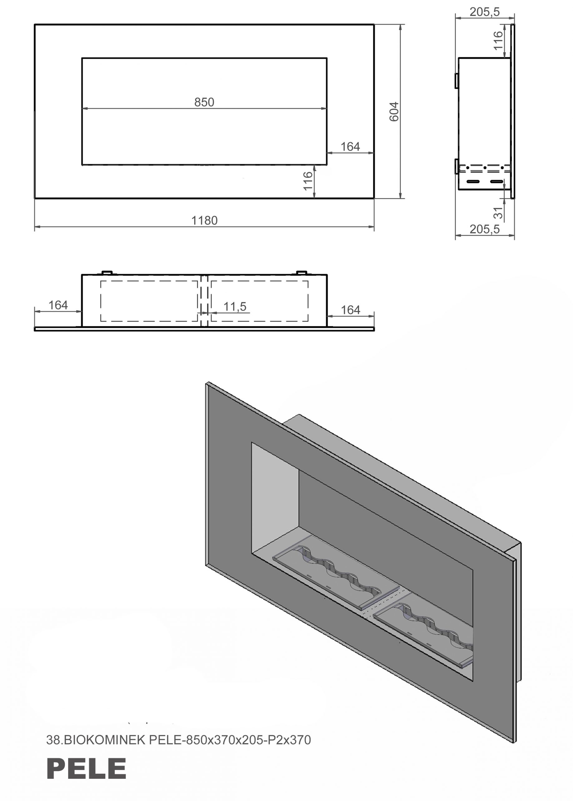 Biokominek Pele 850x370x205-P2x370 jest wyszukanym i oryginalnym modelem kominka do zabudowy na bioetanol.