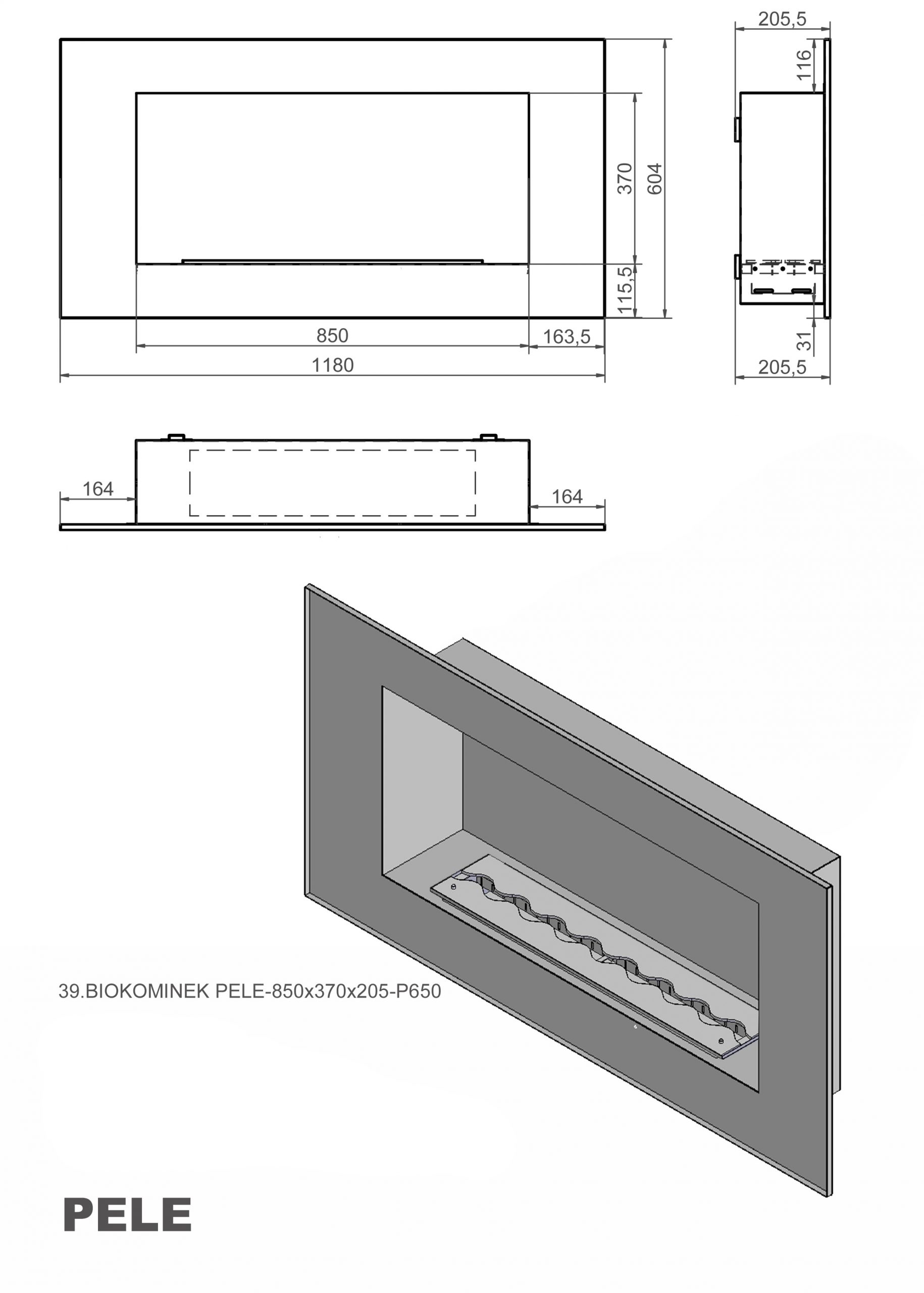 Biokominek Pele 850x370x205-P650 jest wyszukanym i oryginalnym modelem kominka do zabudowy na bioetanol.