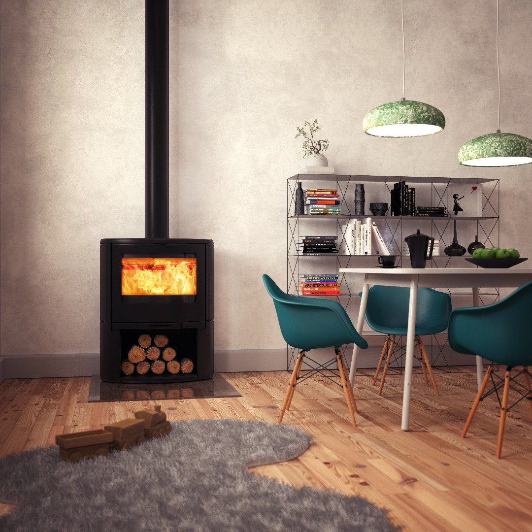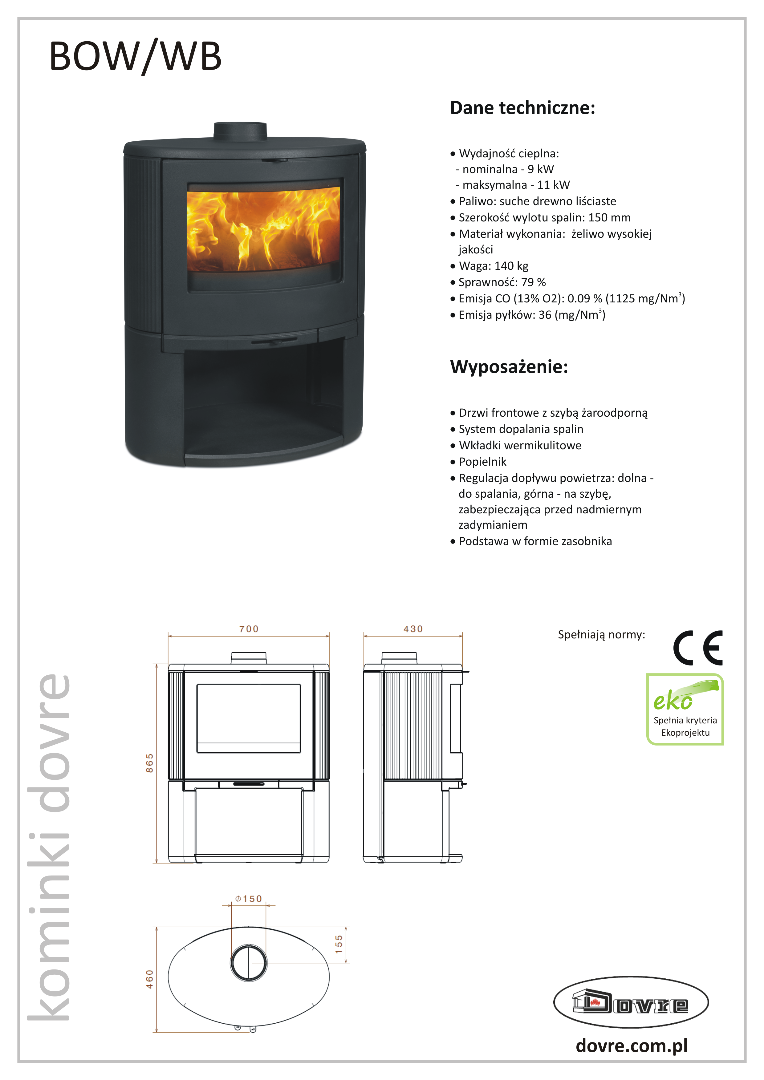Owalny kształt Bow i elegancko zakrzywione, odlewane drzwiczki zapewniają duży, panoramiczny widok ognia. Seria Bow występuje w wersji na stopie lub z zasobnikiem na drewno. Każdy piec Bow można łatwo obsługiwać za pomocą pojedynczego regulatora powietrza.