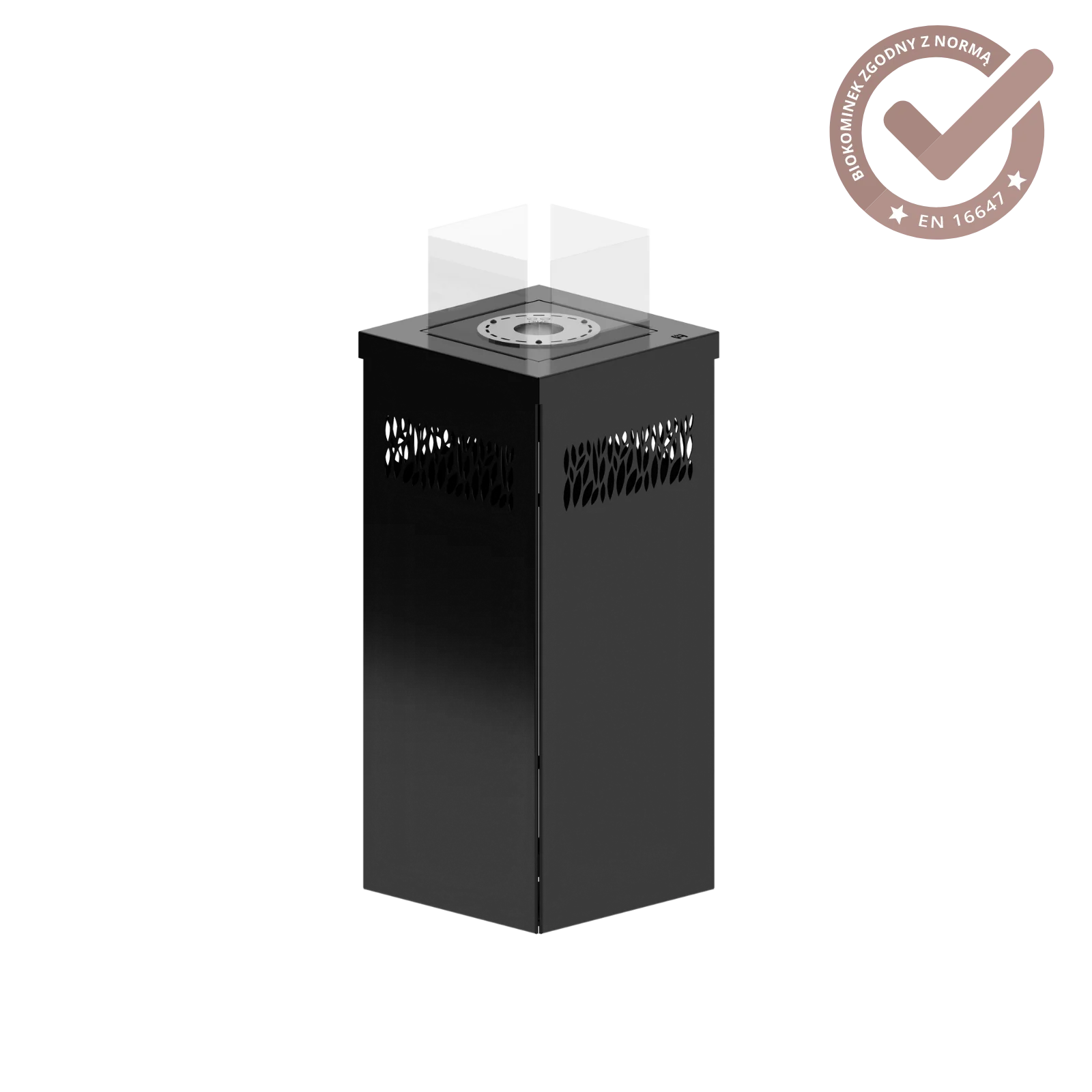 Czterostronne przeszklenie zabezpiecza użytkowników przed bezpośrednim kontaktem z ogniem. Zasilany bioetanolem biokominek KARIF jest w pełni bezpiecznym oraz ekologicznym urządzeniem wyprodukowanym w oparciu o europejską normę EN 16647. W dodatkowym wyposażeniu posiadamy szereg elementów dekoracyjnych, wliczając w to ceramiczne drewienka, różnego typu kamienie ozdobne, czy autorskie włókno imitujące efekt żaru.