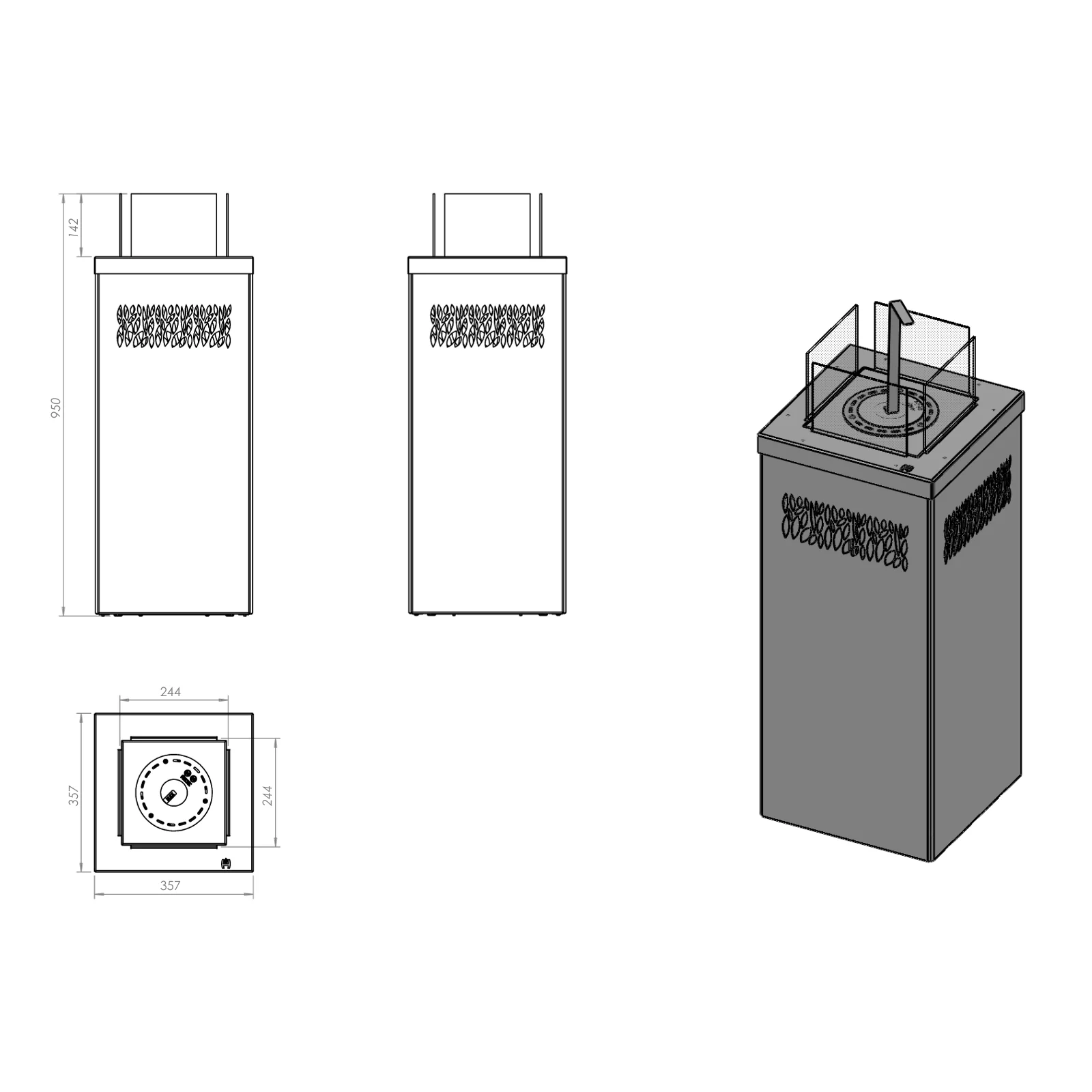 KARIF oferuje również możliwość zastosowania dodatkowych elementów dekoracyjnych, które pozwolą Ci dostosować wygląd biokominka do indywidualnych preferencji i charakteru przestrzeni. Wygaszacz w zestawie umożliwia łatwe i bezpieczne wygaszenie ognia, a okrągłe, wentylowane bionaczynie gwarantuje optymalny przepływ powietrza i efektywne spalanie.