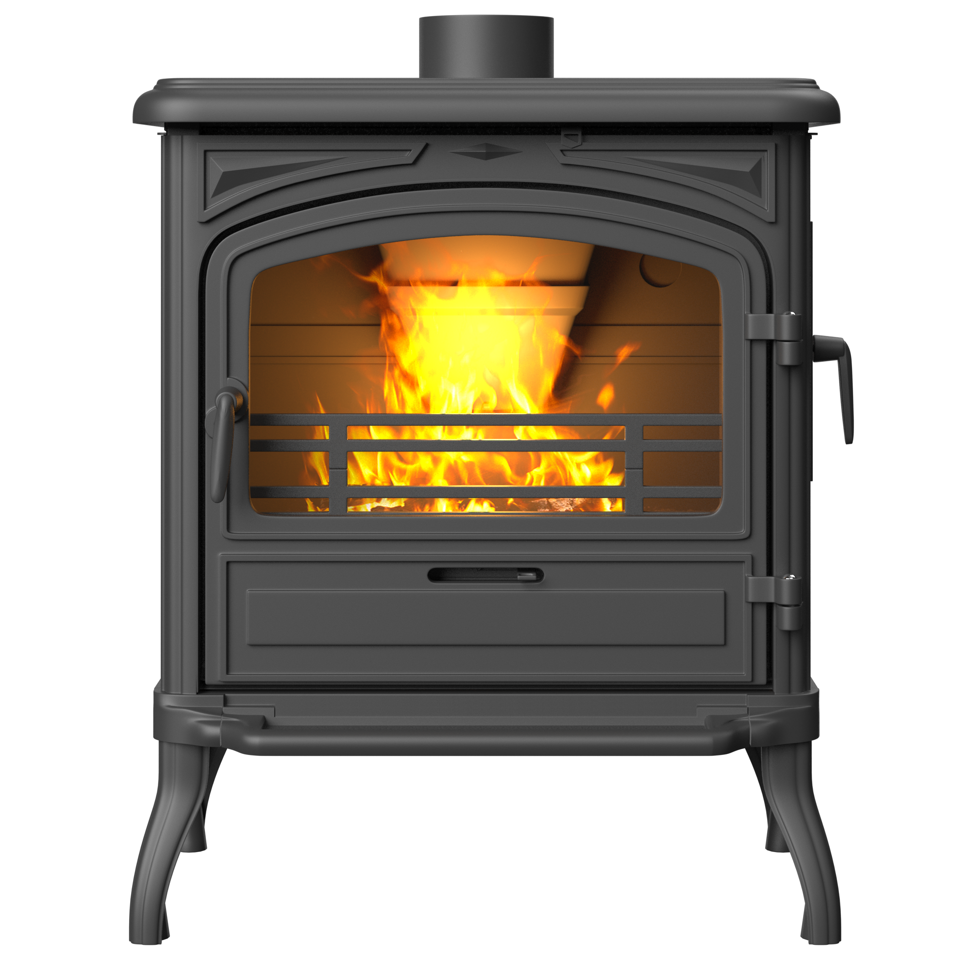 - Wysokiej klasy żeliwo – Piec wolnostojący wykonany jest z trwałego, wysokogatunkowego żeliwa, co zwiększa przewodność cieplną o 30% i zmniejsza zużycie drewna o 30%.