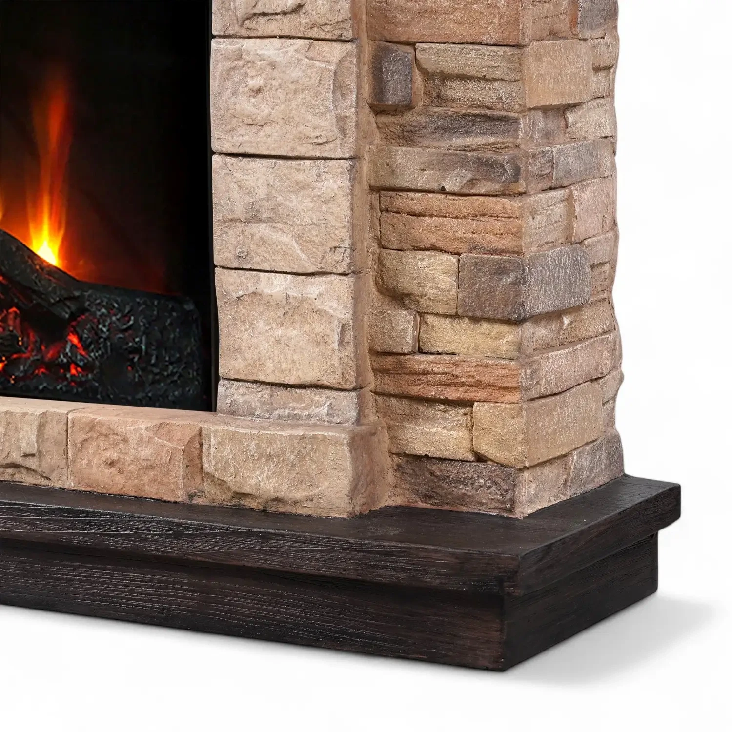 Wykonany z trwałego polystone, kominek Eira oferuje zarówno wyrafinowany styl, jak i praktyczną funkcjonalność. Kamienny wygląd, w połączeniu z detalicznymi kwiatowymi rzeźbieniami i eleganckimi kolumnami, dodaje wyrafinowania każdemu pomieszczeniu. Jego wolnostojący design sprawia, że łatwo go ustawić w dowolnym miejscu, bez potrzeby instalacji czy kominów.