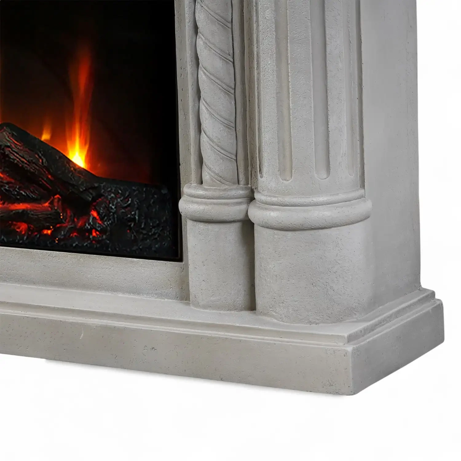 Wykonany z trwałego polystone, kominek Embla oferuje zarówno wyrafinowany styl, jak i praktyczną funkcjonalność. Kamienny wygląd, w połączeniu z detalicznymi kwiatowymi rzeźbieniami i eleganckimi kolumnami, dodaje wyrafinowania każdemu pomieszczeniu. Jego wolnostojący design sprawia, że łatwo go ustawić w dowolnym miejscu, bez potrzeby instalacji czy kominów.