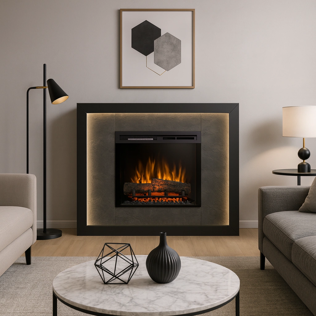 Kominek został wyposażony także w funkcję grzewczą, która pozwala szybko dogrzać pomieszczenie. To świetne uzupełnienie tradycyjnego ogrzewania – szczególnie w chłodne wieczory, kiedy zależy Ci na dodatkowym cieple i przyjemnej atmosferze