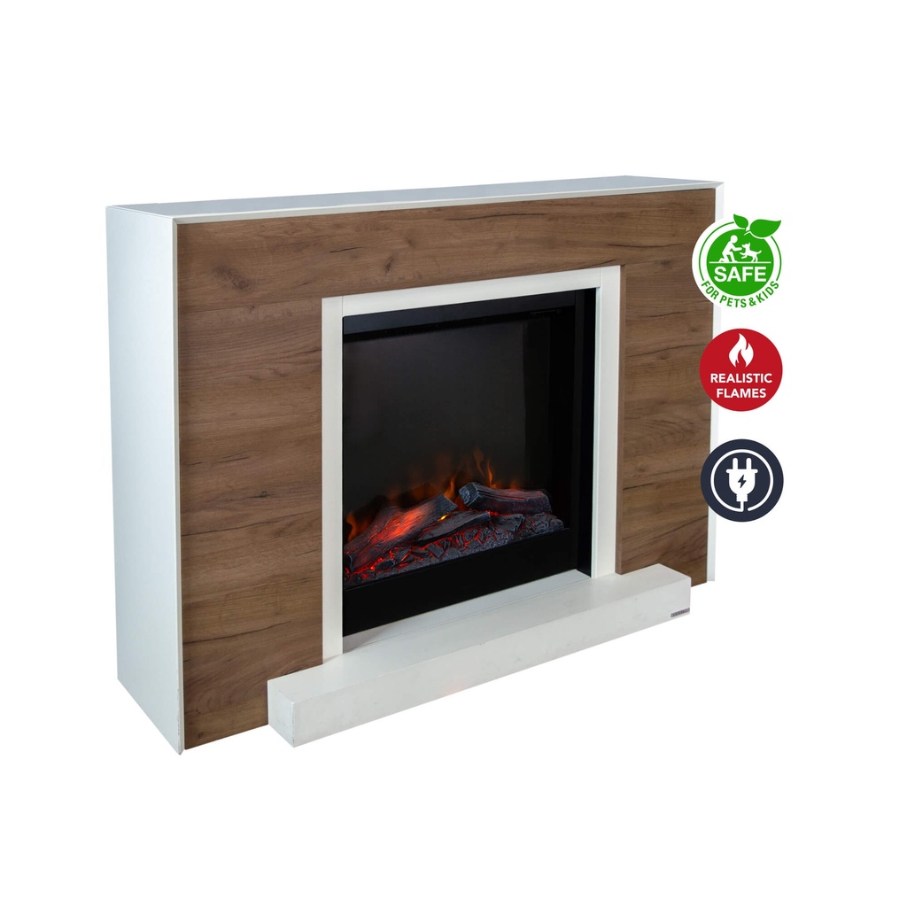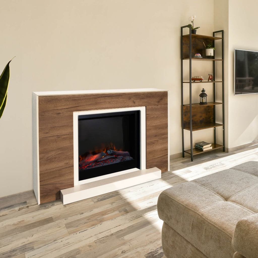 Jeśli cenisz sobie skandynawski styl, Marvik z pewnością Cię zachwyci. Jego obudowa łączy biel płyty MDF z naturalnym drewnem, tworząc elegancki i ciepły wygląd. Dodatkowym atutem jest możliwość demontażu białej drewnianej belki przed paleniskiem – zależnie od preferencji.