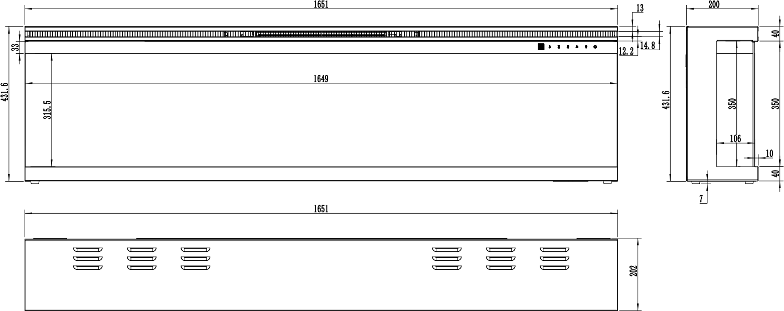 Kominek elektryczny Unique 165 posiada trójstronne palenisko, które robi imponujące wrażenie. Cienkie ramki pozwalają cieszyć się z większej powierzchni paleniska.