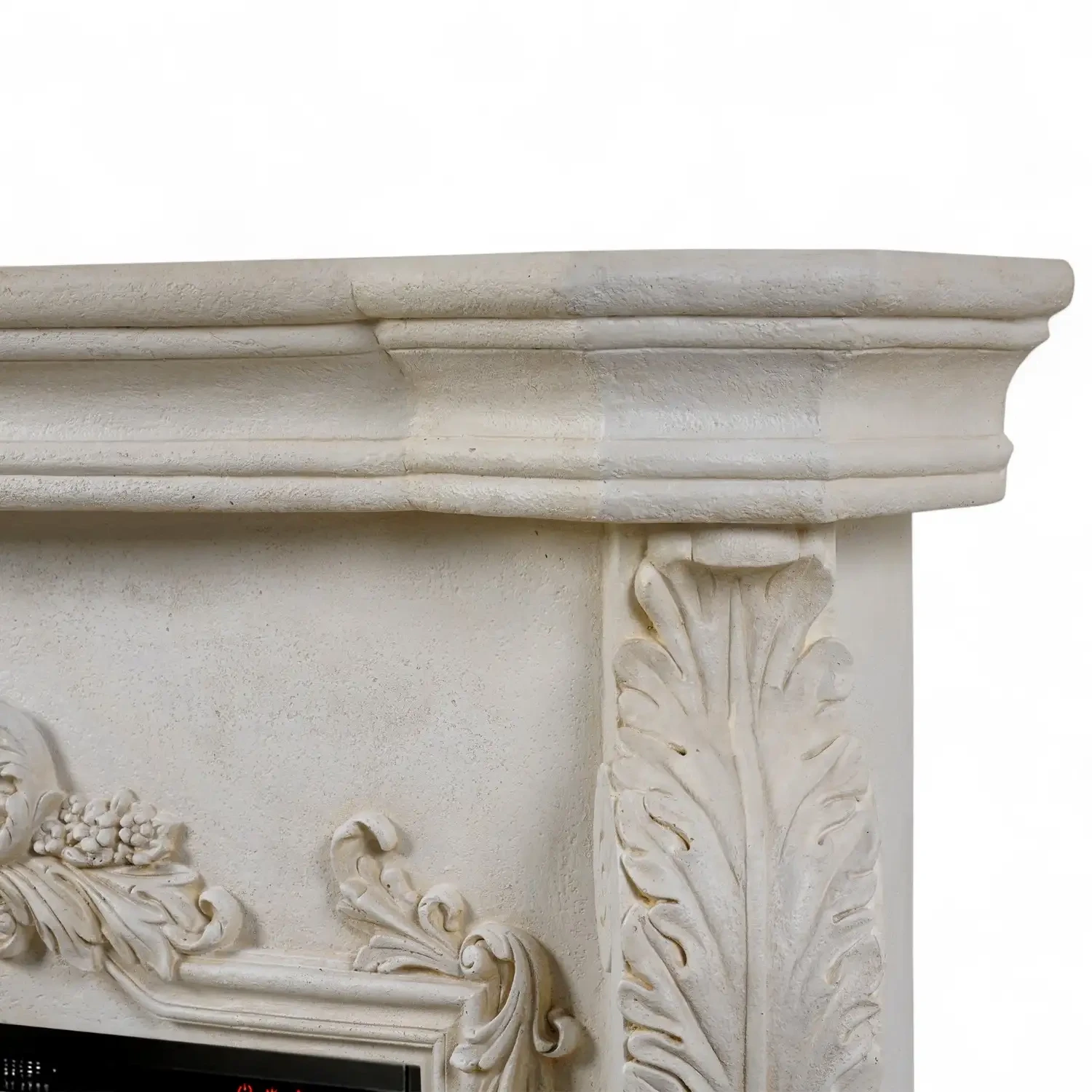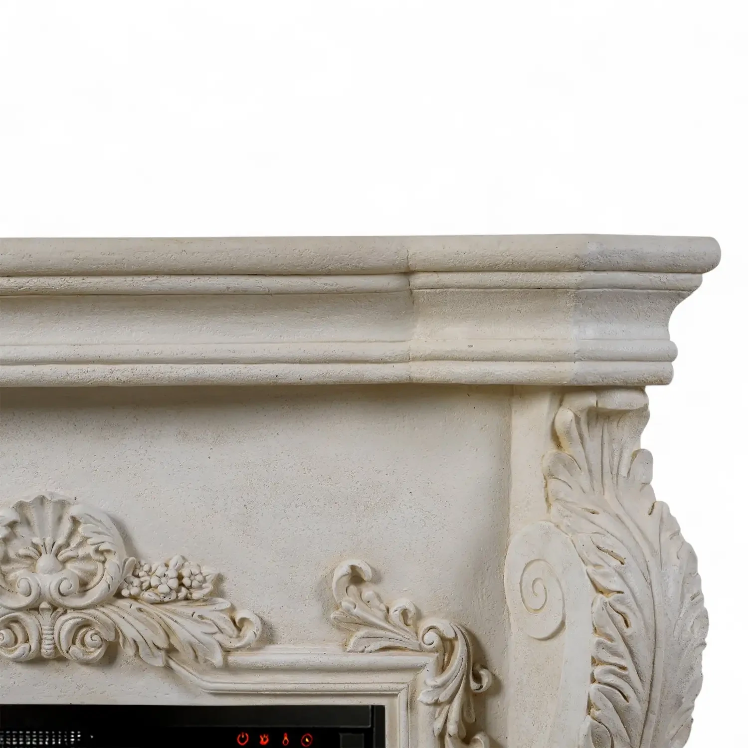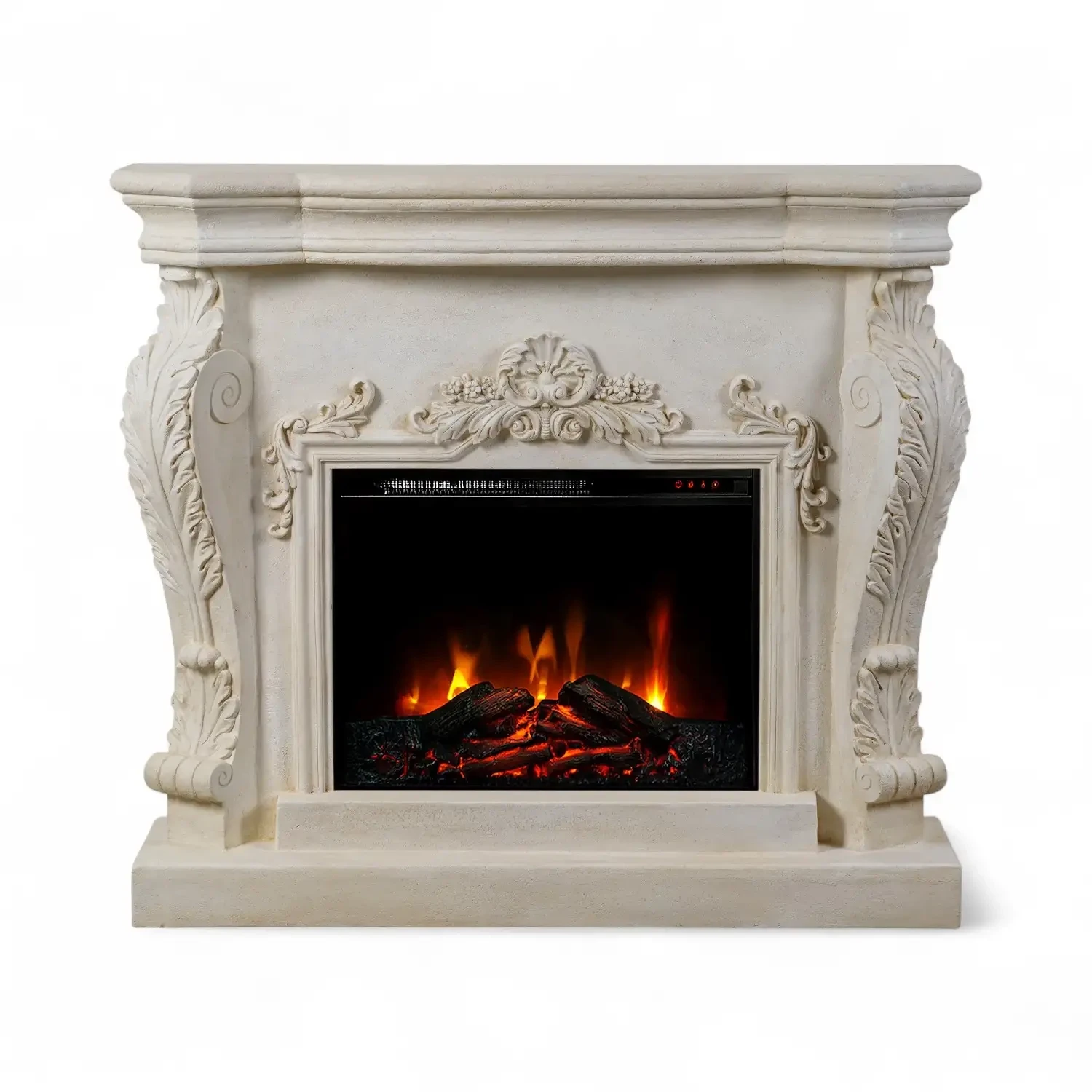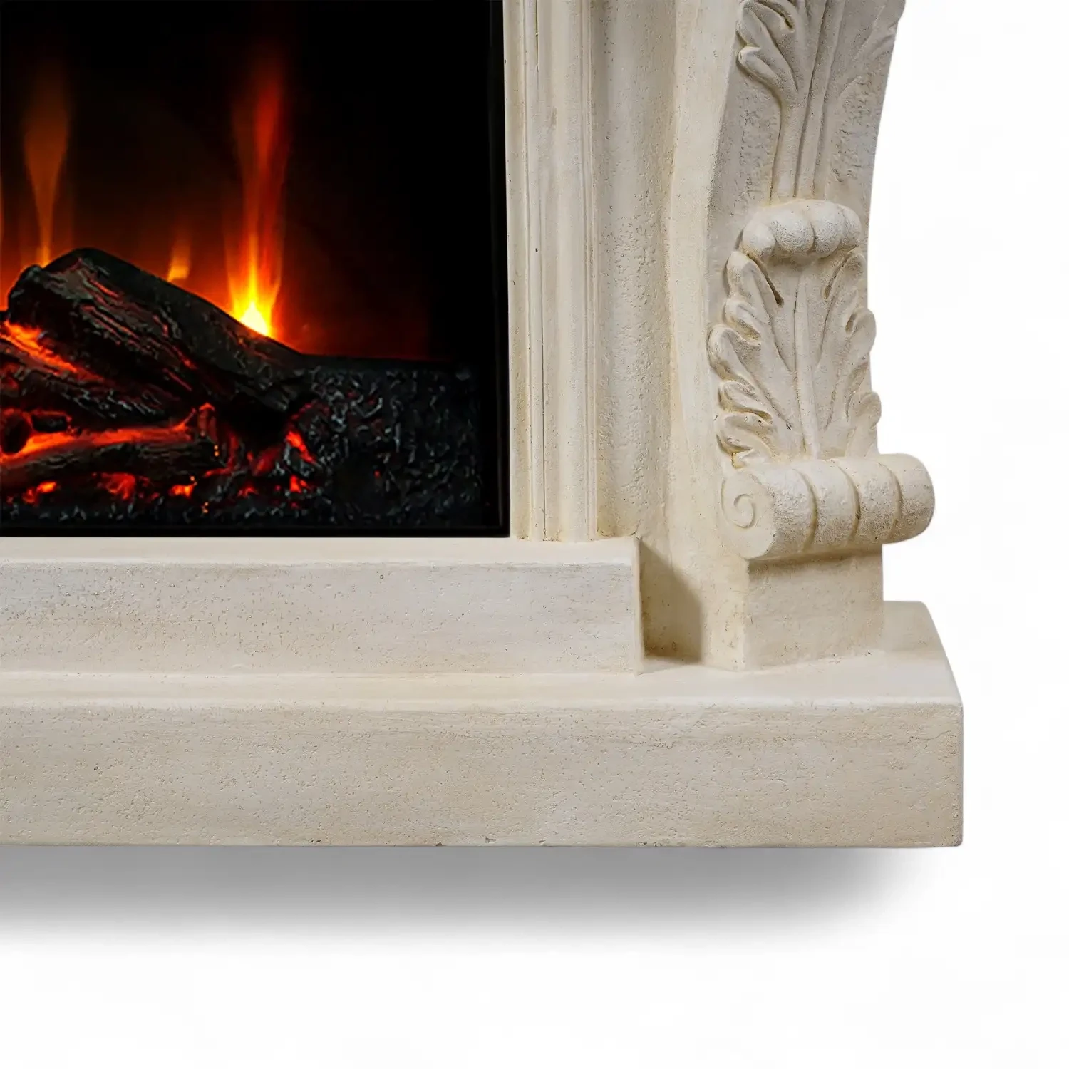 Elektryczny kominek Ymir to uderzający element centralny, który łączy klasyczny design z nowoczesnym komfortem. Jego wolnostojąca obudowa wykonana jest z trwałego polistonu, nadając wygląd i odczucie rzeźbionego kamienia z misternymi detalami. Eleganckie zwoje, wzory liści i centralny kwiatowy herb otaczają elektryczny wkład kominkowy Eldur 23″, tworząc ponadczasowy punkt centralny dla Twojej przestrzeni życiowej.