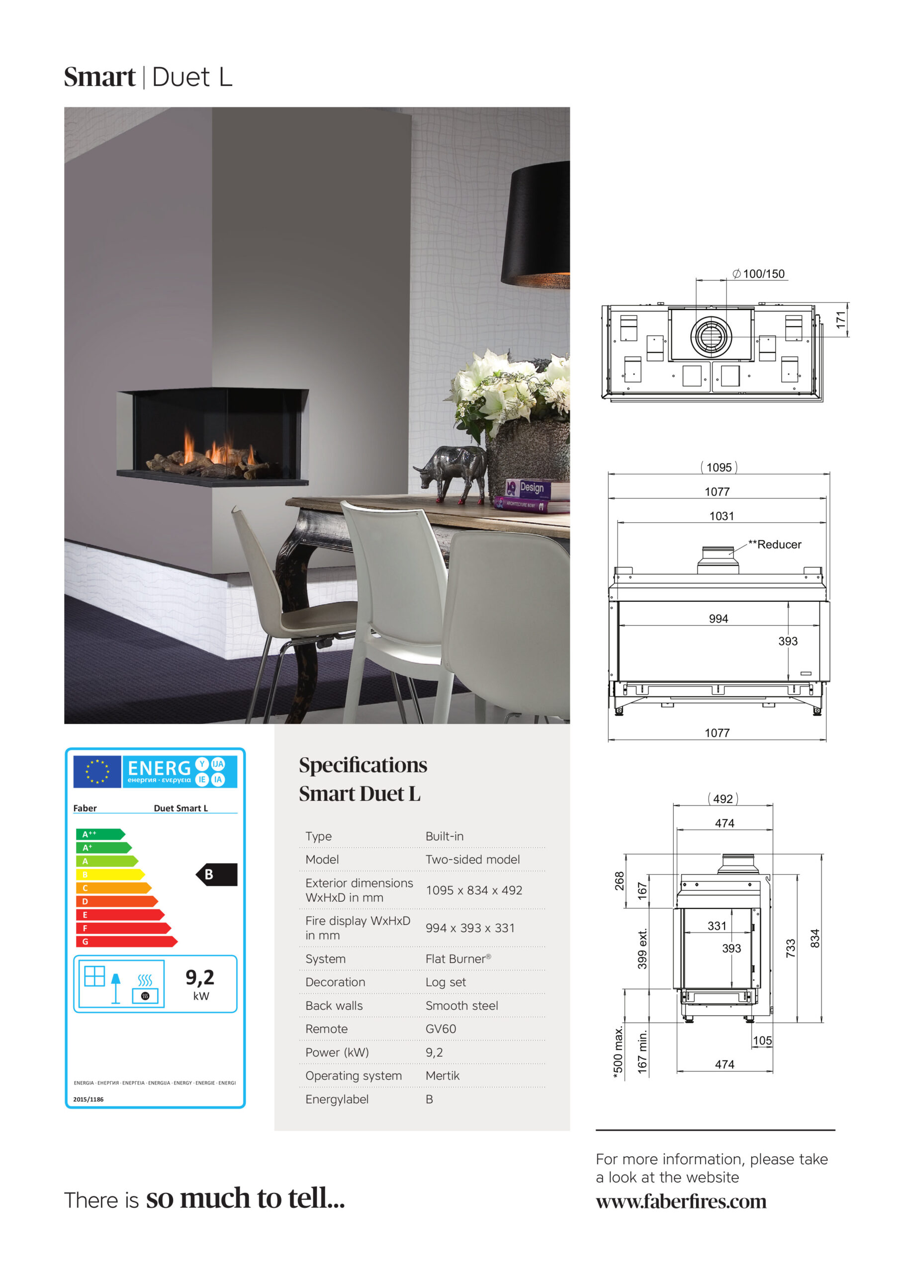 Zastosowane w kominku gazowym DUET L SMART bujne płomienie Flat Burner® bez względu na ich wysokość, okazałe, wypełniają niemalże całą szerokość płyty paleniska. Obraz ten uzupełniają elementy dekoracyjne – poziomo usytuowane, realistycznie wyglądające polana, białe otoczaki Carrara lub szary grys. Pracą kominka można sterować za pomocą pilota zdalnego sterowania.
