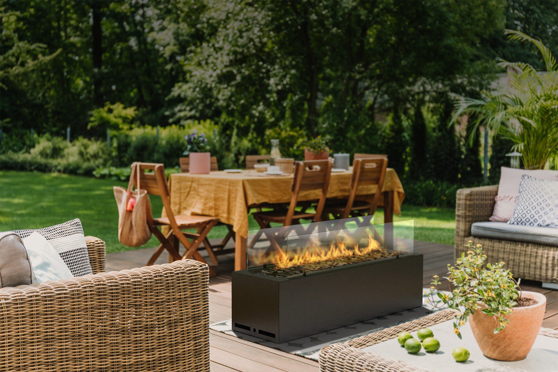 Galio Black to liniowy kominek gazowy w eleganckiej, czarnej obudowie, który idealnie wkomponuje się w każdy styl twojej przestrzeni zewnętrznej. Minimalistyczne wzornictwo i przenośna budową czynią z niego wygodną i prostą w obsłudze dekorację do Twojego ogrodu. W zależności od wybranego rodzaju paliwa, maksymalna moc grzewcza zewnętrznego liniowego kominka gazowego może wynosić od 9,4 kW (LPG) do 11,8 kW (GZ), a zatem jest on źródłem przyjemnego ciepła.