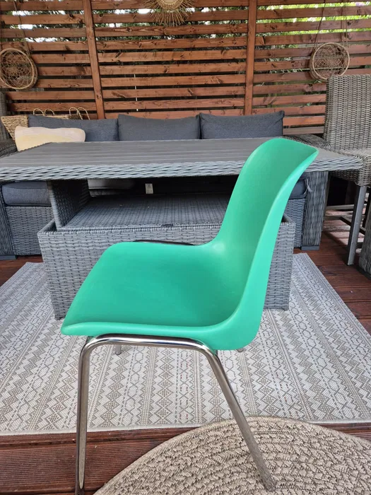 Używane Krzesła plastikowe w kolorze niebieskim i zielonym