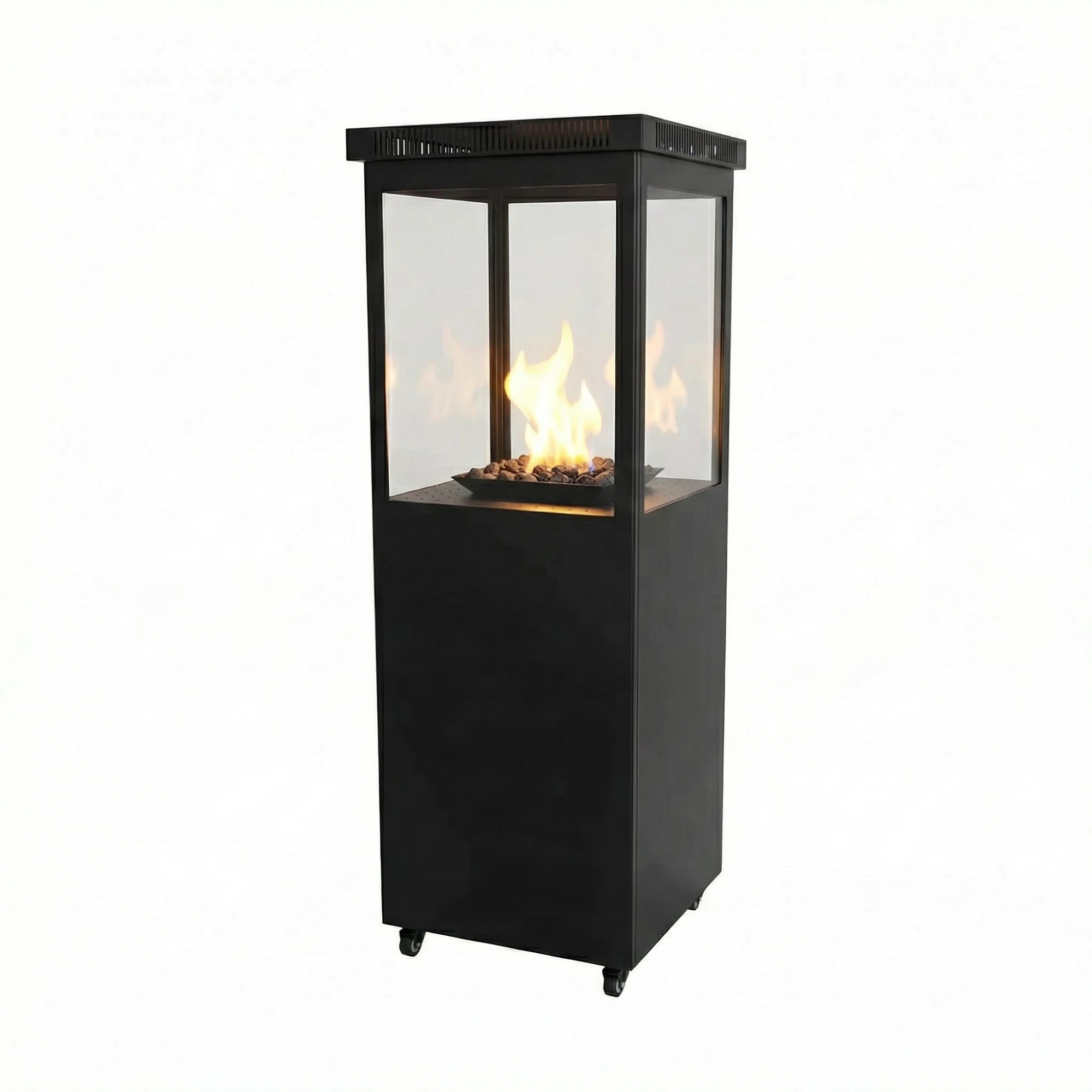 Ogrzewacz Tarasowy Mallorca to prosty, kwadratowy kominek gazowy od Muztag oferuje oszałamiające i mocne płomienie, które można podziwiać w 360 stopniach.