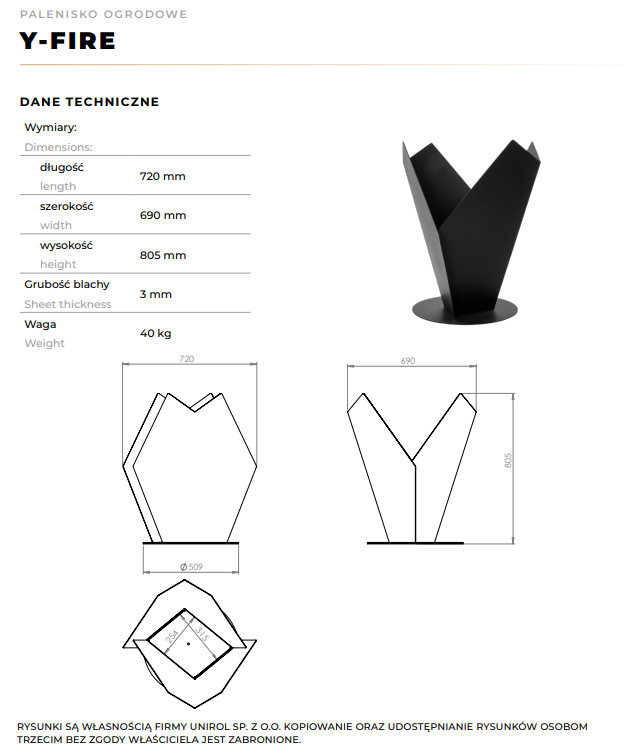 Jego walory bezpieczeństwa, poprzez kształt i stabilne nóżki sprawiają, że palenisko sprawdza się doskonale w każdych warunkach terenowych. Palenisko ogrodowe Y FIRE może bez problemu zastąpić tradycyjny grill.