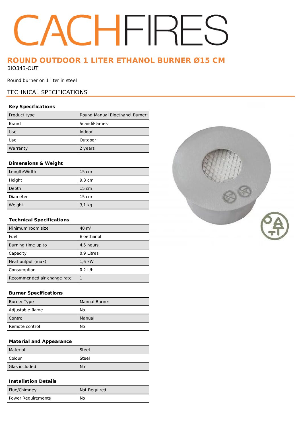 Palnik na bioetanol 0.9 L Zewnętrzny