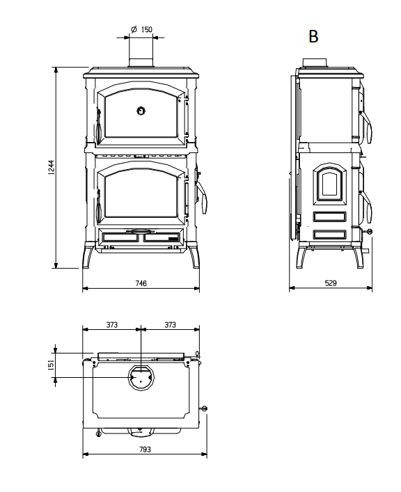 Palenisko jest wewnętrznie wyłożone pojedynczymi płytami żeliwnymi, część tylna jest wyjmowana. Dzięki zastosowaniu skalibrowanych otworów, zapewniony jest dopływ podgrzanego powietrza do wnętrza paleniska, uzyskując w ten sposób dodatkowe spalanie, które zwiększa wydajność i ogranicza emisję niespalonych gazów. Wewnątrz znajduje się zdejmowana obrotowa kratka.