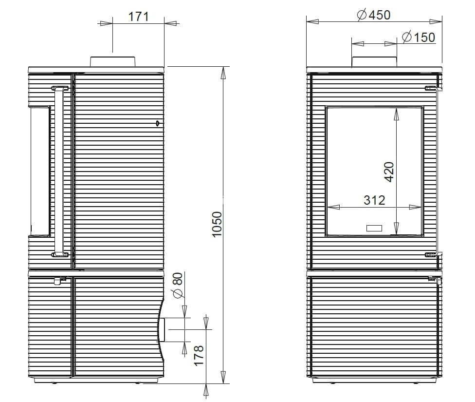Model ten posiada system czystej szyby, działający na zasadzie kurtyny powietrznej. Komora paleniska jest standardowo wyposażona w deflektor, ruszt, popielnik oraz ogranicznik drewna. Piec jest objęty 5-letnią gwarancją producenta.