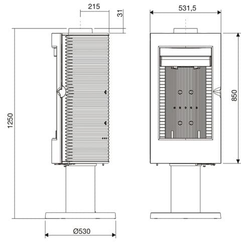 Model ten posiada system czystej szyby, działający na zasadzie kurtyny powietrznej. Komora paleniska jest standardowo wyposażona w deflektor, ruszt, popielnik oraz ogranicznik drewna. Piec jest objęty 5-letnią gwarancją producenta.