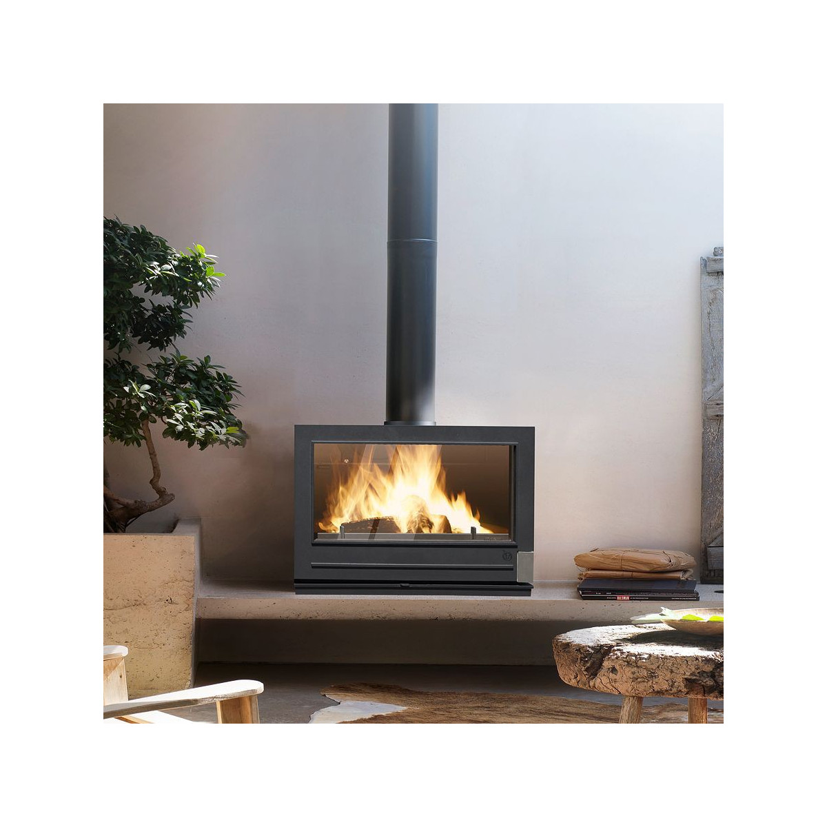 Model ten posiada system czystej szyby, działający na zasadzie kurtyny powietrznej. Komora paleniska jest standardowo wyposażona w deflektor, ruszt, popielnik oraz ogranicznik drewna. Piec jest objęty 5-letnią gwarancją producenta.