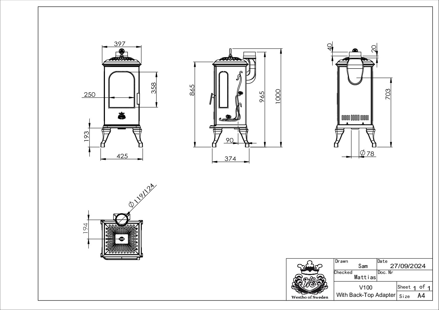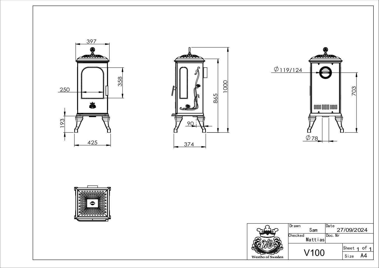 Widok ognia jest niemal nieograniczony. Westbo Victoria 100 oferuje również płytę grzewczą na górze. Piec jest dostępny w różnych wersjach, z szybą boczną lewą/prawą lub bez.
