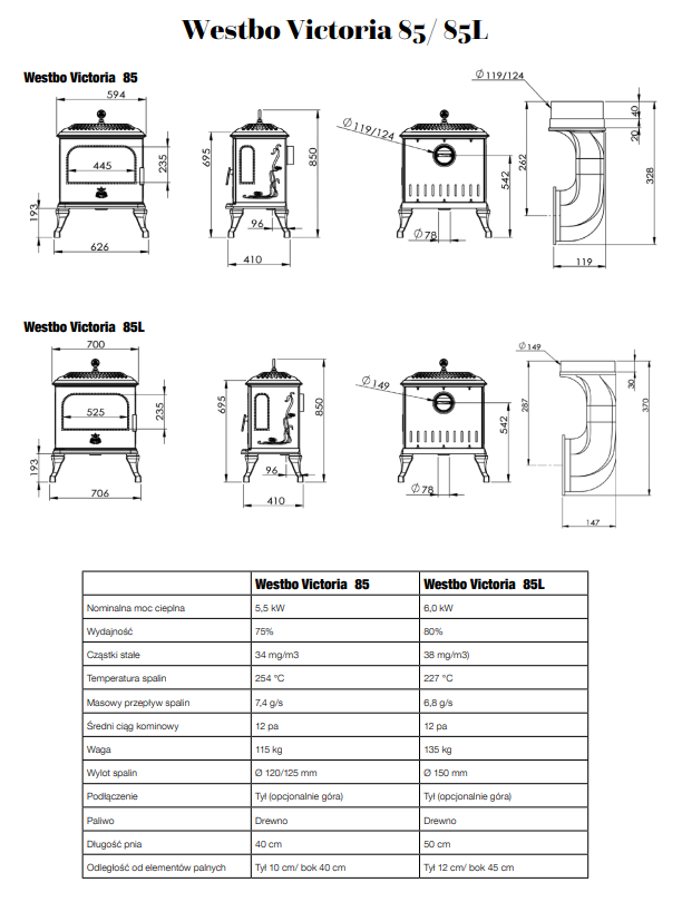 Wszystkie modele Westbo Victoria posiadają płytę grzewczą, która możne nam posłużyć do podgrzania ulubionego posiłku lub zagotować na niej wodę w czajniku. Piecyk można podłączyć do zewnętrznego źródła powietrza potrzebnego do spalania. Seria Westbo Victoria kontynuuje bogatą tradycję piecyków żeliwnych produkowanych w Szwecji.