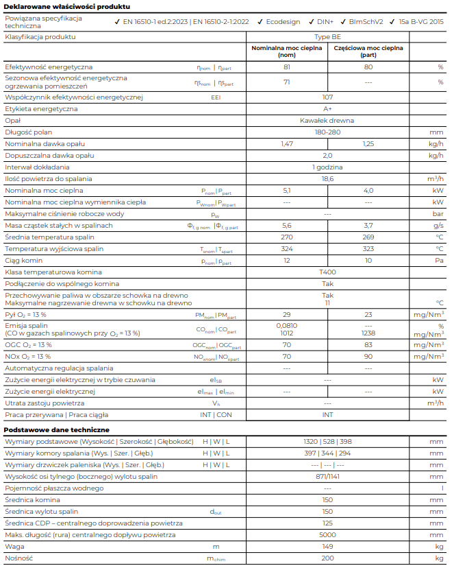 • Wymiary komory spalania (Wys. | Szer. | Głęb.) – 397 | 344 | 294 mm