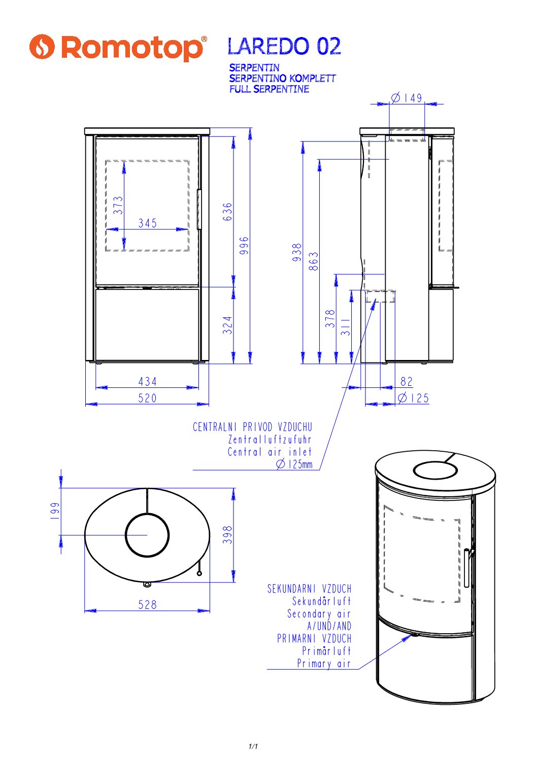 Piec kominkowy odpowiedni do domów energooszczędnych. Piec posiada system CDP – centralne doprowadzenie powietrza zewnętrznego. Standardowo możliwe jest podłączenie górnego lub tylnego odprowadzenia spalin. Dzięki dopływowi powietrza wtórnego, które opływa szybę drzwiczek, nie dochodzi do osadzania zabrudzeń. Komora spalania wyłożona szamotem. Regulacja dopływu powietrza pierwotnego i wtórnego za pomocą jednego elementu sterującego.