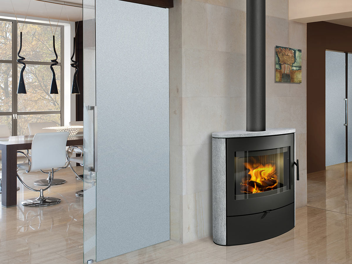 Piec Wolnostojący NAVIA 02 Kamień oferuje doskonałą harmonię zaokrąglonych linii i wydajnej funkcjonalności. Duże, panoramiczne szkło zapewnia imponujący widok ognia i sprawia, że piec staje się wyraźnym elementem wystroju – zarówno w nowoczesnych, jak i klasycznych wnętrzach. W dolnej części pieca znajduje się zamykany schowek na drewno, który pozwala na przechowywanie mniejszej ilości drewna lub narzędzi kominkowych. Dostępność różnych obłożeń – kamień steatyt, kafli ceramicznych lub czarnej blachy – pozwala idealnie dopasować piec do wnętrza.
