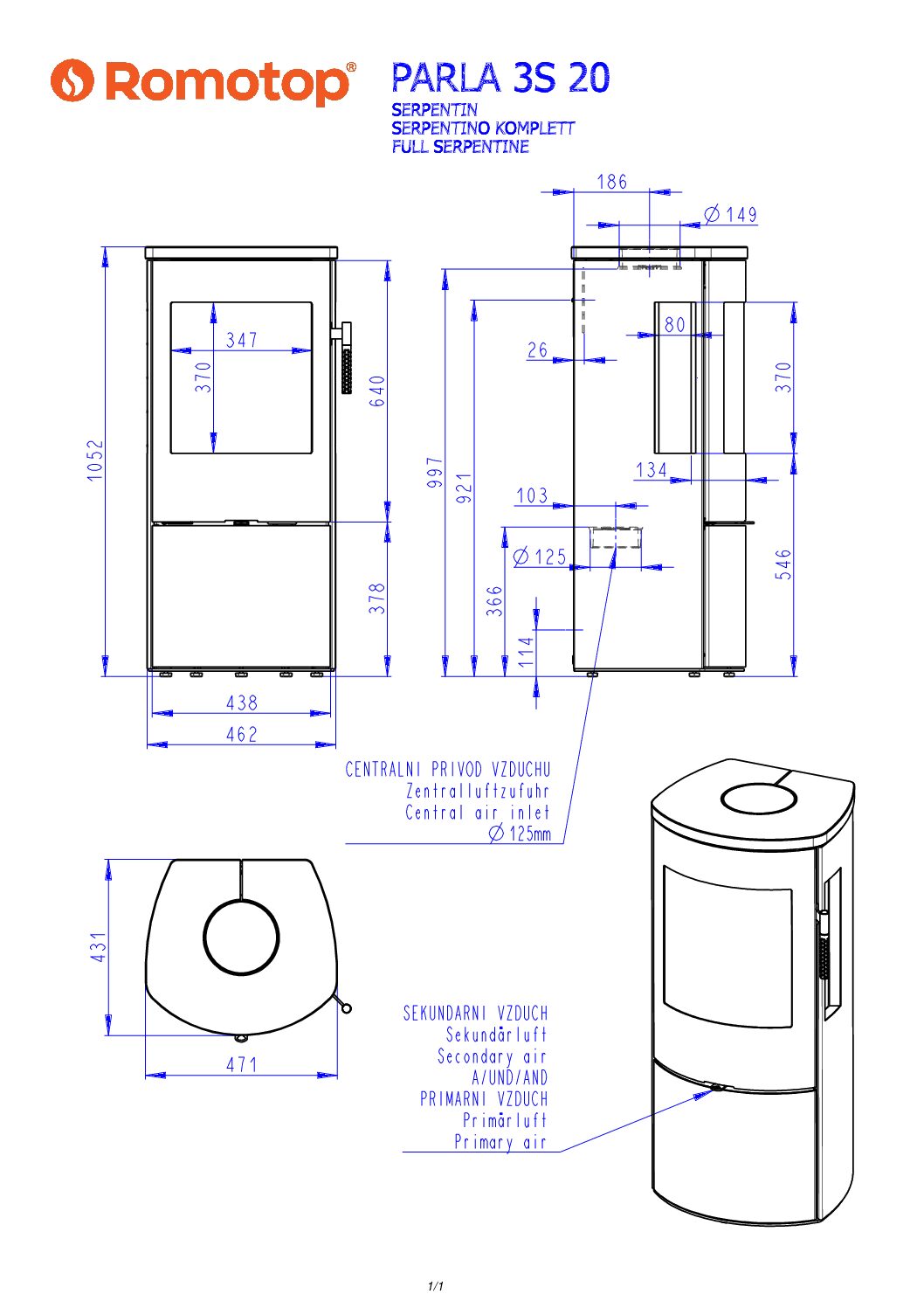 Piec kominkowy odpowiedni do domów energooszczędnych, posiada system CDP czyli centralne doprowadzenie powietrza zewnętrznego. Standardowo możliwe jest podłączenie górnego lub tylnego odprowadzenia spalin. Dzięki dopływowi powietrza wtórnego, które opływa szybę drzwiczek, nie dochodzi do osadzania zabrudzeń. Komora spalania wyłożona szamotem. Regulacja dopływu powietrza pierwotnego i wtórnego za pomocą jednego elementu sterującego.