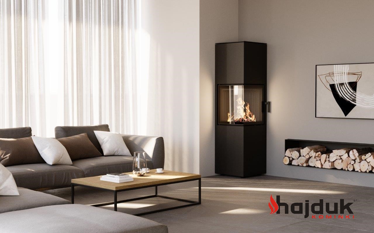 Tym, co wyróżnia piece typu PIXEL, są dwustronne przeszklenia. Koza zapewnia dwustronną wizję ognia, a dzięki temu doskonale wygląda ustawiona w narożniku pomieszczenia albo na styku dwóch pomieszczeń. PIXEL XXL śmiało można nazwać kominkiem wolnostojącym narożnym. Dzięki prostokątnej formie idealnie przylega do ściany, pozwalając na maksymalne wykorzystanie przestrzeni wokół paleniska.