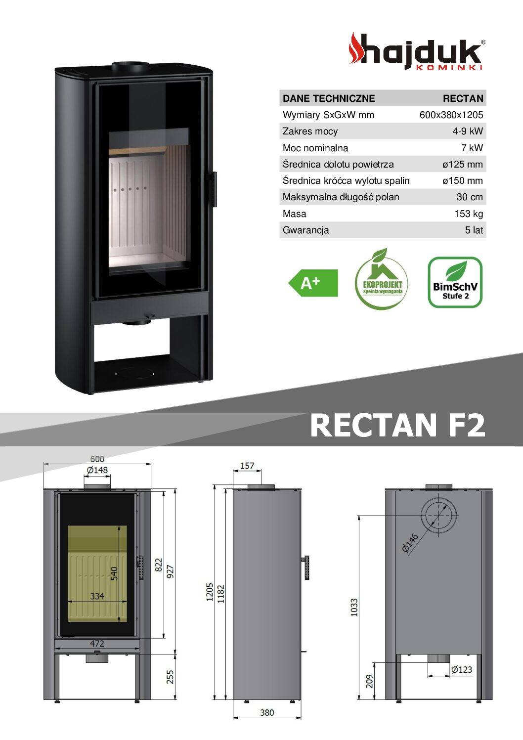 Stalowy Piec wolnostojący RECTAN F2