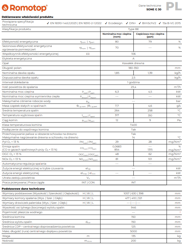 - Wymiary komory spalania (Wys. | Szer. | Głęb.) – 417 | 410 | 321 mm