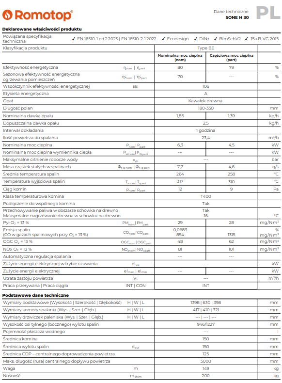 - Wymiary komory spalania (Wys. | Szer. | Głęb.) – 417 | 410 | 321 mm