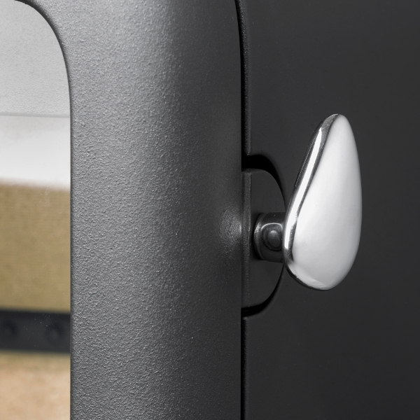 - Drzwi frontowe z szybą żaroodporną, zapewniającą świetną panoramę ognia
